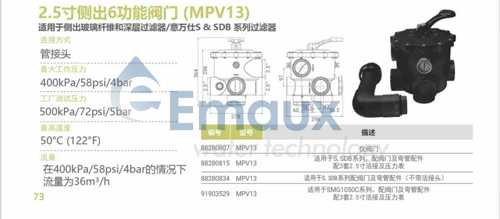 | Product Name:2.5"SIDEMOUNT 6-WAY VALVEWITH PIPING KIT | |||